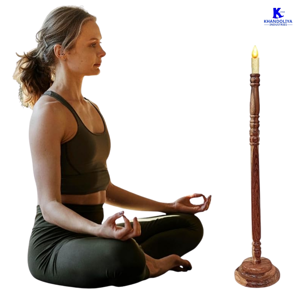 The K-Star KTSW Wooden Tratak Stand is a simple and stable yoga meditation accessory used for Trataka Sadhana, a traditional practice that improves eye focus, concentration, and mental clarity. Made from strong natural wood, it safely holds a candle or diya at eye level, helping maintain correct posture during meditation. This wooden Tratak stand is widely used in yoga ashrams, meditation centers, wellness spaces, and spiritual practice rooms. Regular guided use helps reduce mental stress, relax the eyes, and deepen mindfulness and meditation practice, making it suitable for both beginners and experienced practitioners.