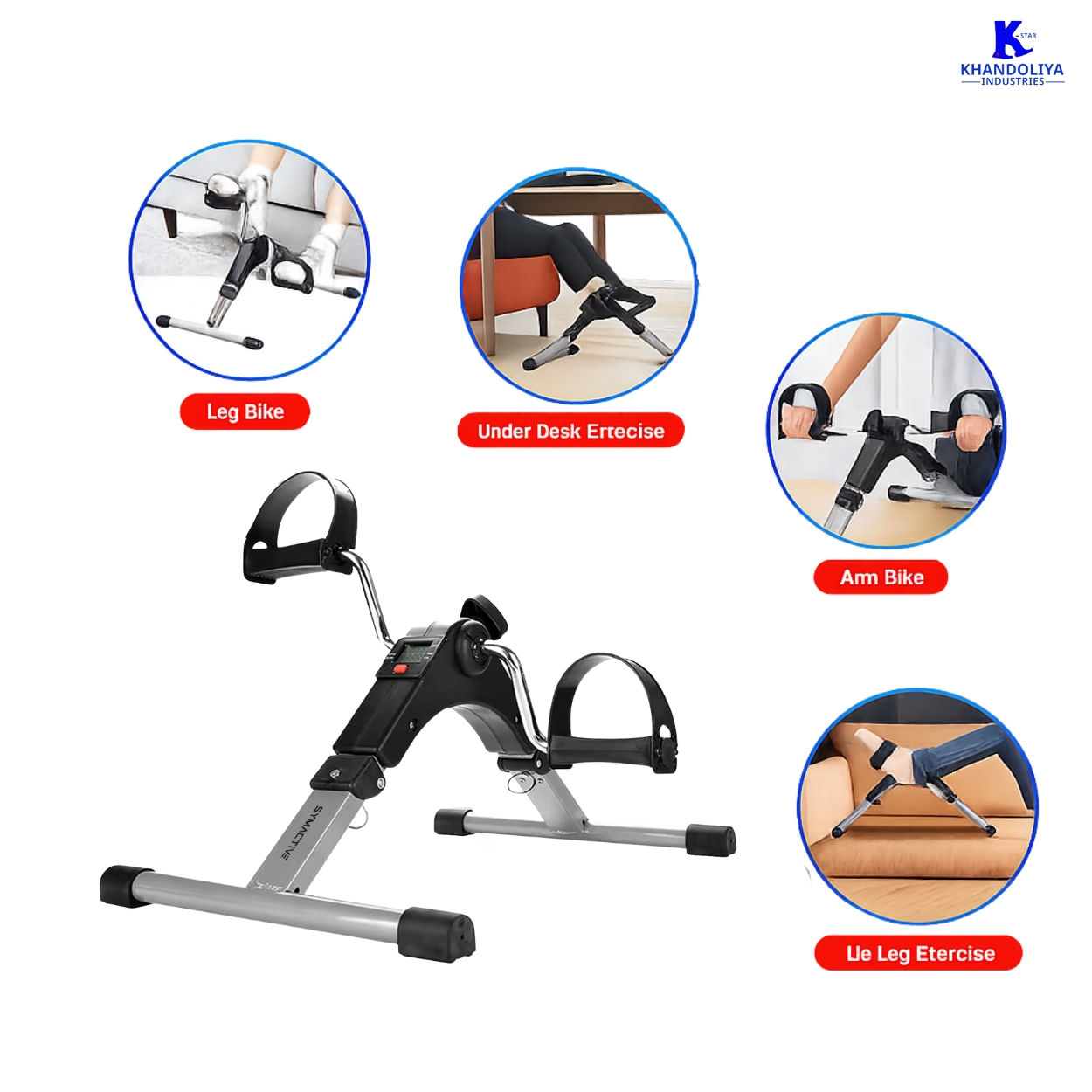 The K-Star Mini Pedal Exerciser Cycle is designed to provide an effective low-impact fitness solution for people of all age groups. It helps improve leg strength, arm endurance, joint flexibility, and circulation without putting excessive pressure on the knees or joints, making it ideal for daily fitness and rehabilitation. This portable pedal exercise machine allows users to perform seated workouts for arms and legs with adjustable resistance, ensuring customized training intensity. The compact design makes it easy to place under a desk, table, or in front of a chair, supporting regular physical activity even in limited spaces.