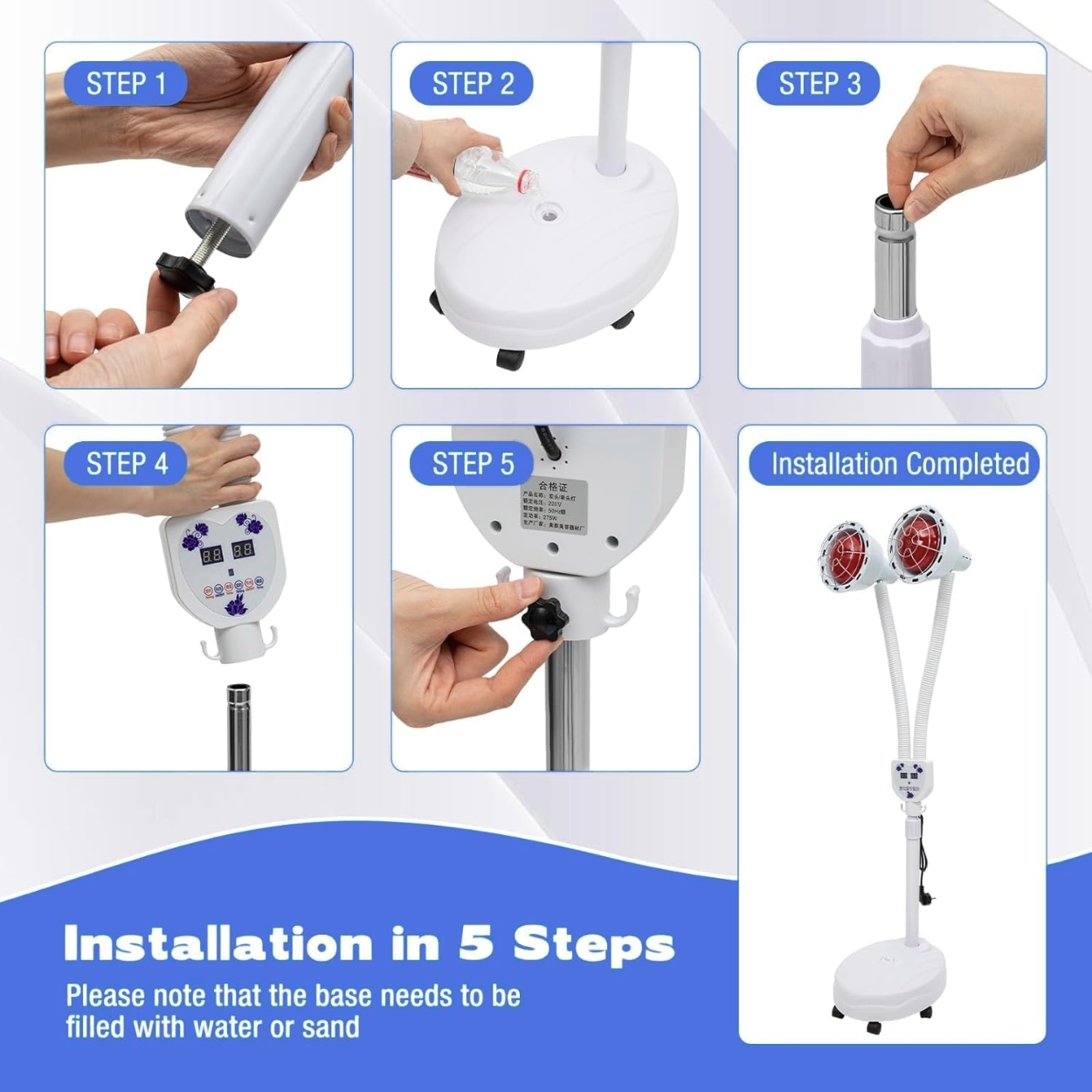 - Place the infrared heating lamp with stand on a stable and flat surface.