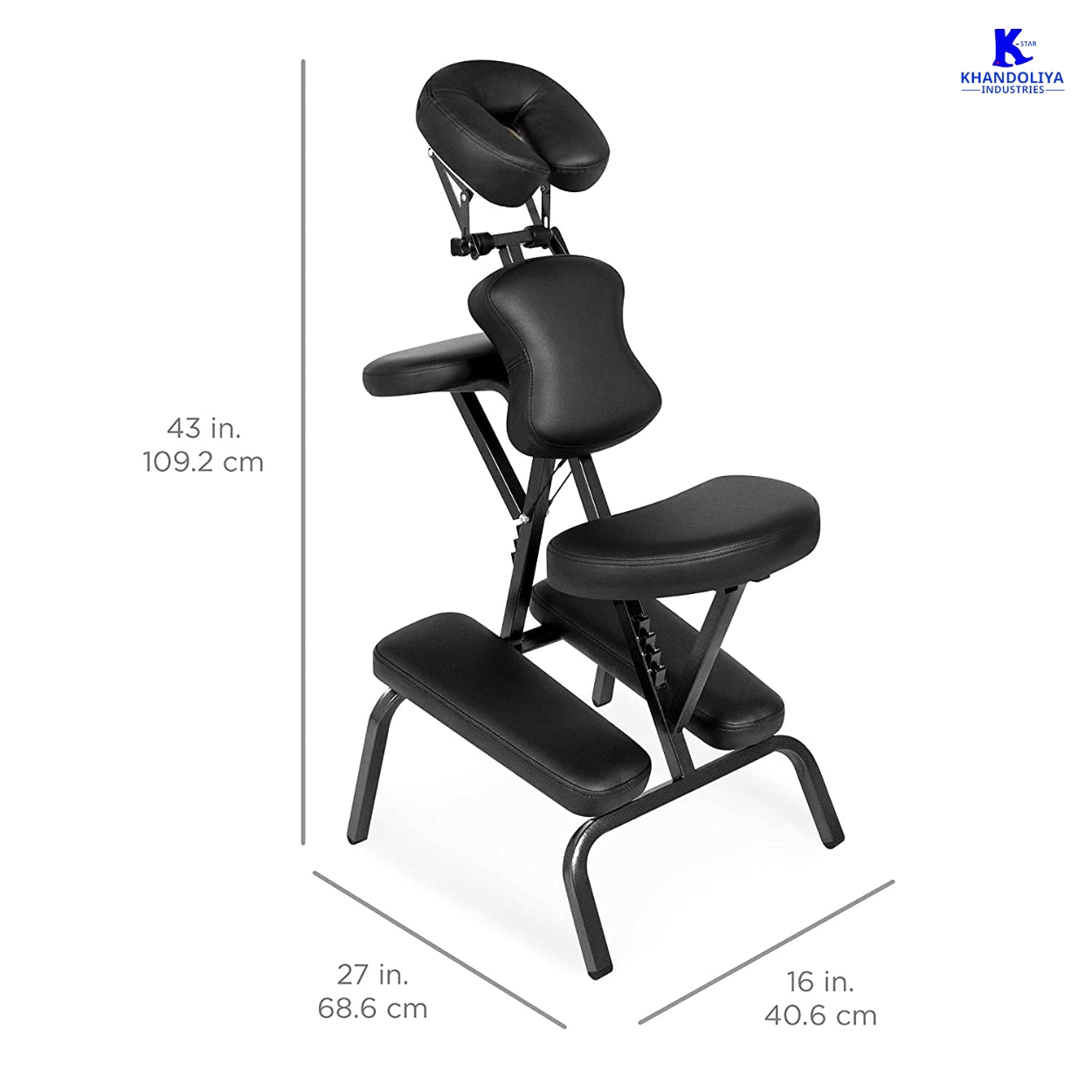 The KCMC Portable Cupping & Hijama Massage Chair is an ergonomic therapy chair designed for cupping therapy, Hijama, massage, and physiotherapy treatments, allowing patients to sit comfortably in a forward-leaning position for easy access to the back, shoulders, neck, and spine. It features adjustable height, chest support, armrest, and face cradle to ensure proper positioning and comfort during sessions, while the strong metal frame and thick cushioning provide stability and relaxation. Widely used in Hijama clinics, physiotherapy centers, massage studios, chiropractic clinics, wellness spas, and by mobile therapists, this foldable and portable massage chair is easy to carry, store, and ideal for both clinic and on-site therapy use.